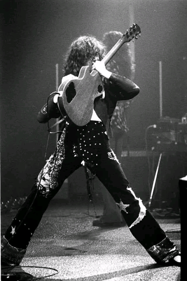 But let’s not ignore the visual: the black bell-sleeve dragon suit, the tousled hair, the cigarette dangling from his lips, and that unmistakable “cool as hell” presence. Page looked like he had stepped out of some otherworldly dream — part rock god, part alchemist. Onstage, he wasn’t just playing; he was conjuring magic.