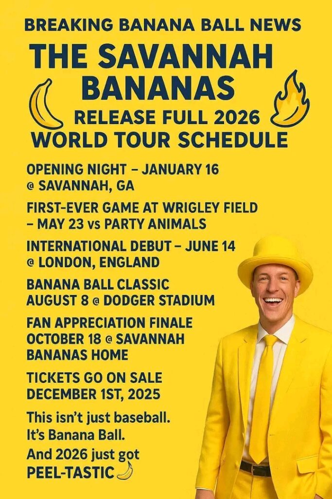 In a highly anticipated announcement, The Savannah Bananas have confirmed they will release their full 2026 Banana Ball World Tour schedule in early October, coinciding with a major live event.