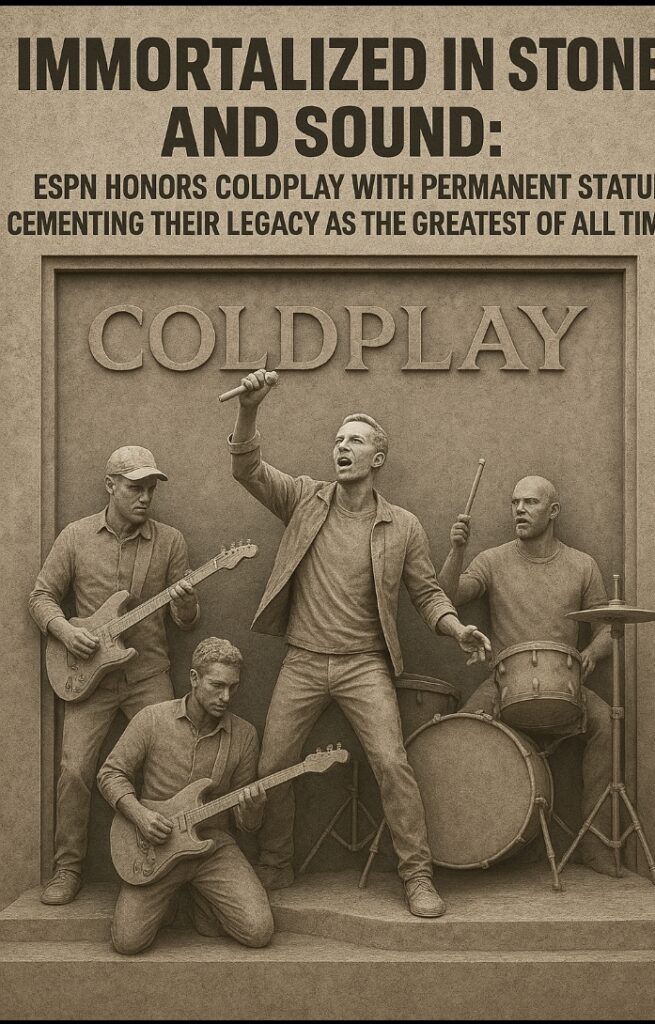 In a rare and extraordinary gesture, ESPN has stepped outside its traditional realm of sports to honor one of the most iconic musical acts of the modern era. Coldplay, the globally beloved British band whose music has transcended genres, borders, and generations, has been immortalized in stone with a permanent statue commissioned by the network. The unveiling, which took place in front of a live audience and broadcast across ESPN’s platforms, solidified the group’s place not only in the annals of music history but also in the broader cultural narrative as the “Greatest of All Time.”
