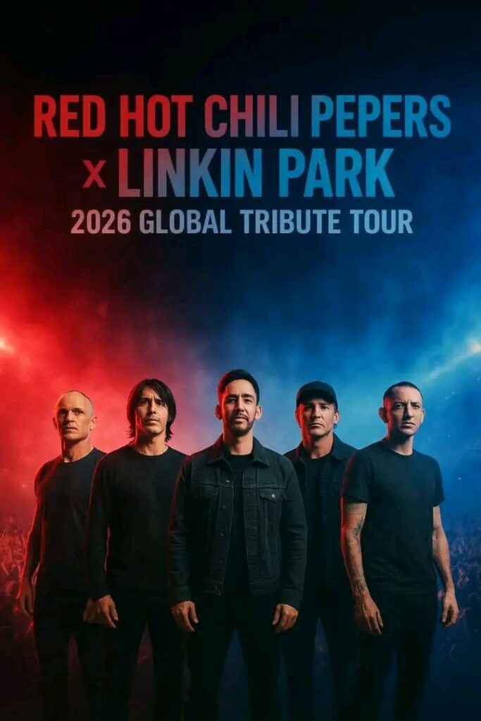 In one of the most unexpected and thrilling announcements in modern rock history, two of the most influential bands of the last three decades—Red Hot Chili Peppers and Linkin Park—have joined forces for an unprecedented 2026 Global Tribute Tour, celebrating music, legacy, and the unbreakable spirit of rock. Fans around the world were left stunned as both bands revealed the news simultaneously on social media, accompanied by a cinematic teaser featuring archival footage, emotional voiceovers, and a powerful tagline: “Legends Never Fade — The Music Lives On.” The tour is being described as both a tribute to the late Chester Bennington and a celebration of the enduring power of collaboration, healing, and artistic brotherhood that transcends generations and genres.