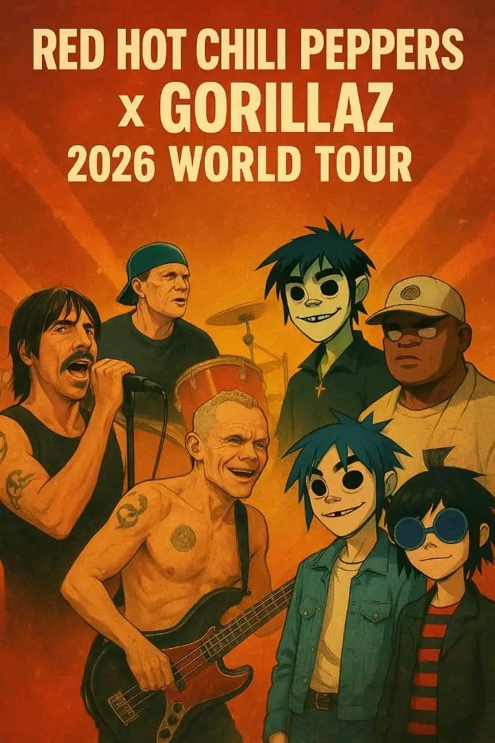 With both bands at the height of their creative powers, the Gorillaz x Red Hot Chili Peppers 2026 World Tour is shaping up to be one of the most talked-about musical events of the decade — a global celebration of rhythm, rebellion, and reinvention.